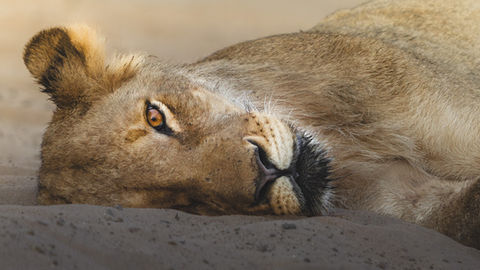 Lions and other predators pacing grasslands or resting in woodland