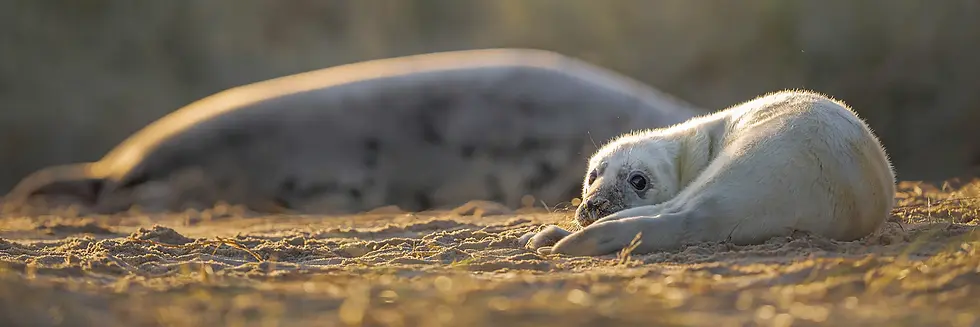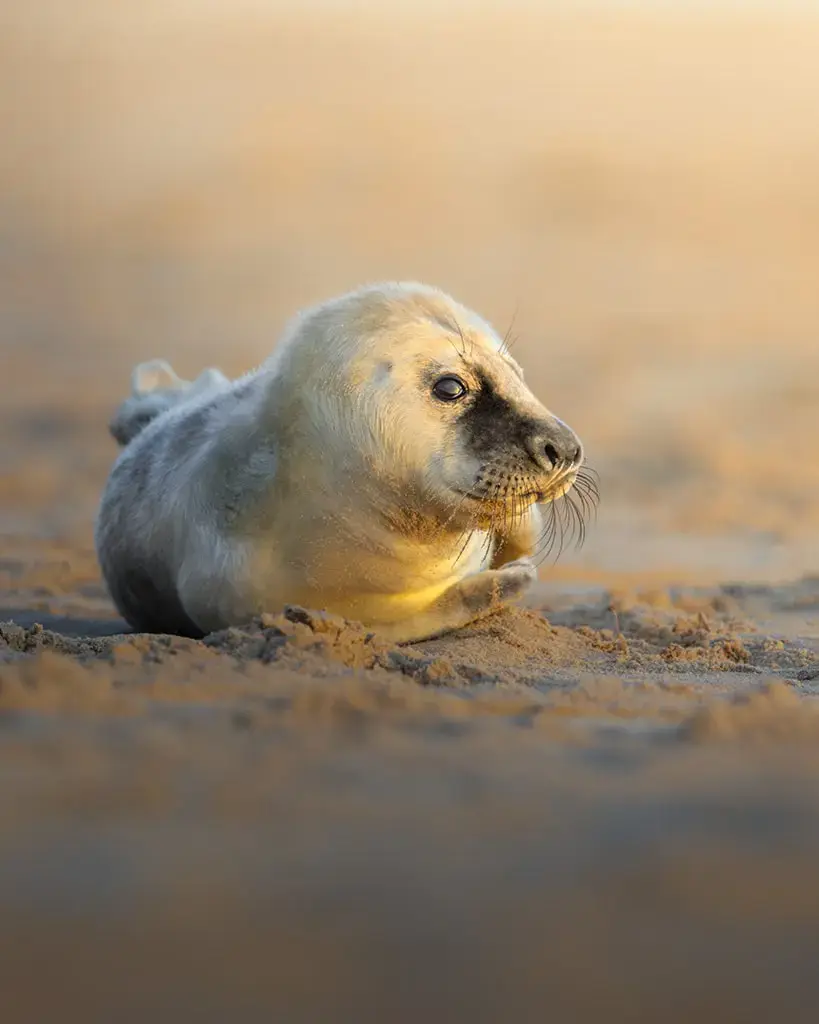 Your portfolio will follow seal pups through their early weeks, from tiny newborns to curious, mobile youngsters. You’ll photograph mums and pups together, feeding and protective behaviour, life within the colony, and wider shots that place the seals in Norfolk’s dramatic coastal setting. Sunrise and sunset beaches, the Norfolk Broads, and the changing moods of a winter coast all add variety to your images.